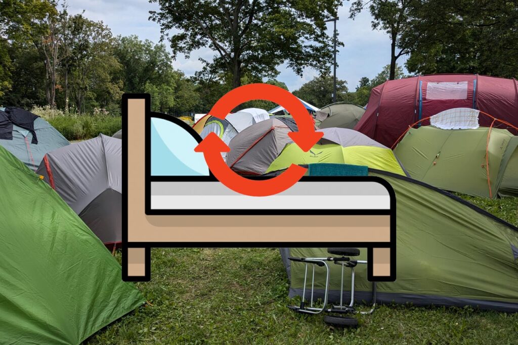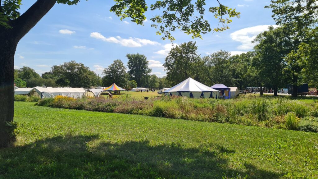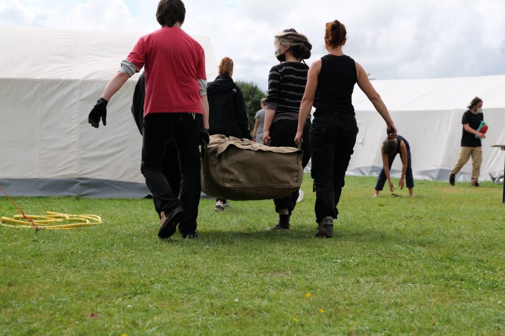 Wir haben uns entschieden, dieses Jahr ein hybrides Konzept anzuwenden – also nur Gruppen, die im Sinne der Barrierearmut besonders von einer festen Raumzuweisung profitieren, statisch in einem Zelt unterzubringen...