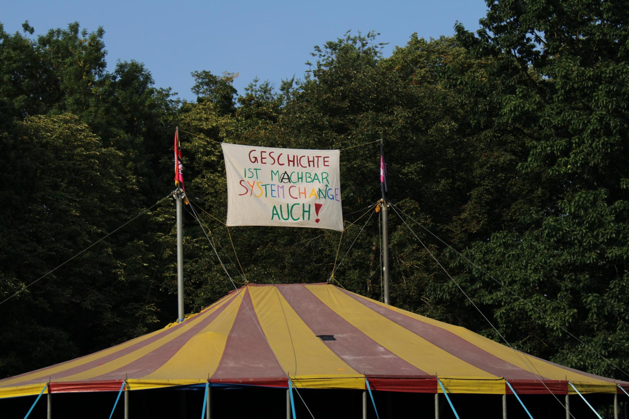 Das System Change Camp ist ein selbstorganisiertes Camp mit dem Ziel, einen bewegungsübergreifenden Bildungs-, Austausch- und Vernetzungsraum zu schaffen.